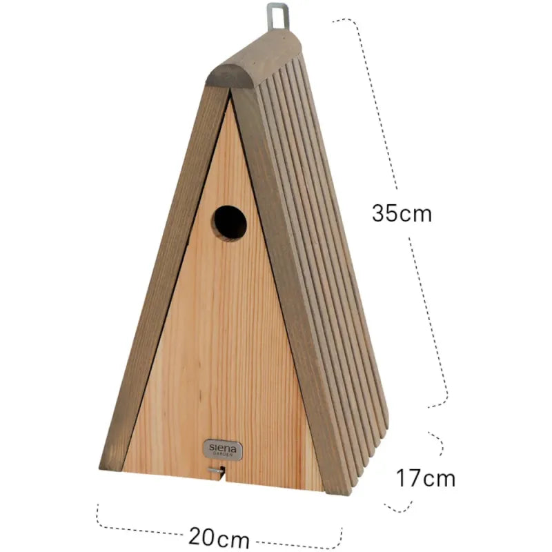 Einfache Montage | Der Nistkasten kann an einem Baum aufgehangen werden. Um dir die Anbringung zu erleichtern, ist ein Metallhaken vorhanden.