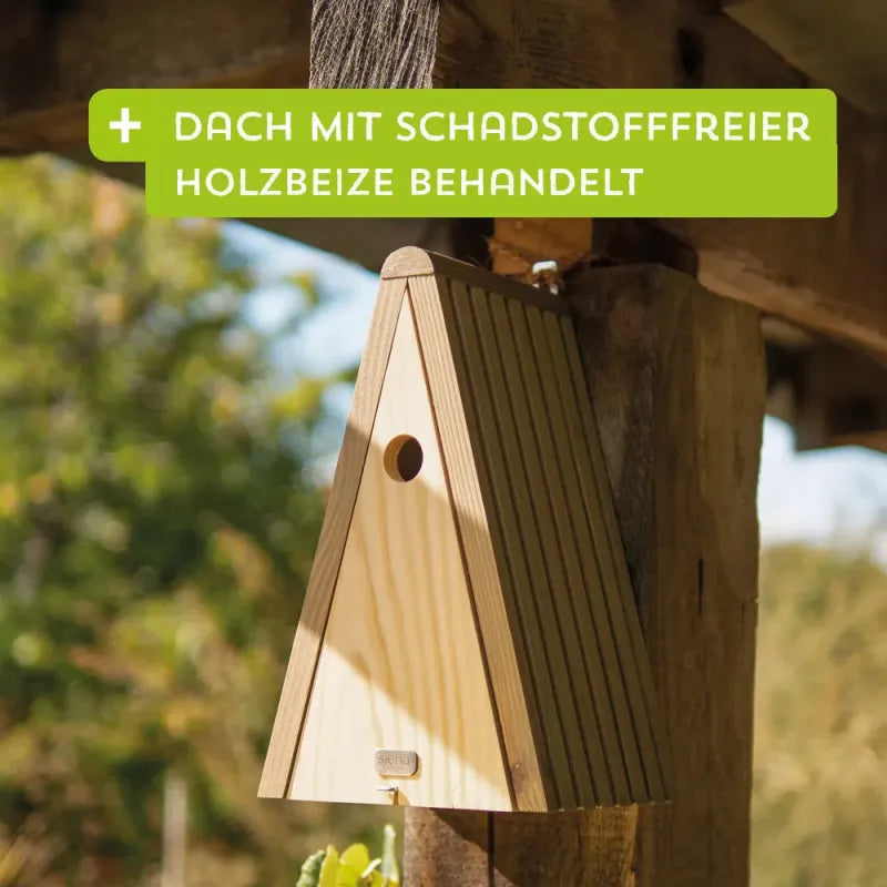 Familienglück | Mit diesem Nistkasten lockst du dir eine Vogelfamilie in den Garten. Das Vogelhaus bietet den Tieren einen geschützten Unterschlupf und einen Brutplatz, um neuen Nachwuchs heranzuziehen.