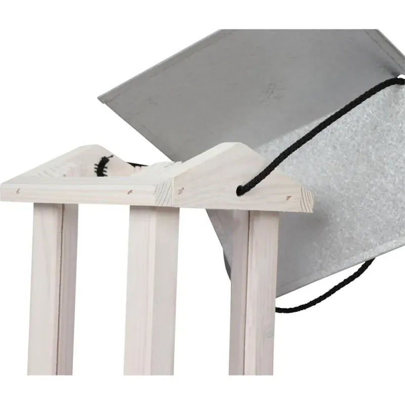 Das Dach besteht aus verzinktem witterungsbeständigem Stahlblech welches die Langlebigkeit der Futtersäule steigert. Zudem schützt der Überstand die Futterstelle vor leichtem Regen.